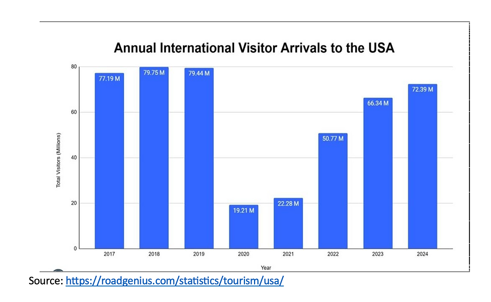 68.3 million international visitor arrivals are expected in 2025, a decrease of 5.7% according to Tourism Economics, a noted industry economics consultancy.